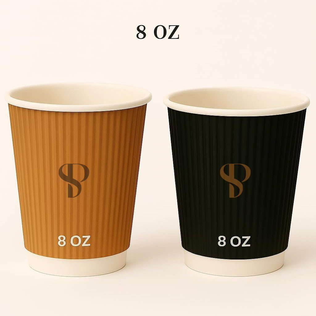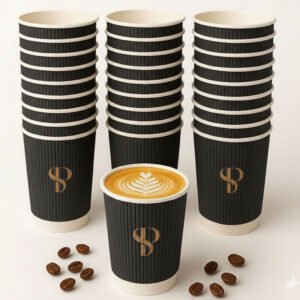 Elevate your hot beverage service with these premium 360ml (12-ounce) ripple wall disposable cups. The innovative double-wall design provides superior insulation, keeping drinks at the perfect temperature while remaining comfortable to hold. Available in classic brown and sophisticated black, these cups are perfect for serving coffee, tea, hot chocolate, and other warm beverages. The rippled wall construction not only enhances thermal protection but also adds an elegant tactile element to the drinking experience. Each pack contains 500 cups, making them ideal for cafés, offices, events, or high-volume service environments. The cups feature a standard rim design compatible with commonly available lids (sold separately). Their sturdy construction ensures reliable performance for your hot beverage needs, while the textured exterior provides a secure grip. These versatile cups maintain drink temperature effectively and are sized perfectly for standard coffee servings, cappuccinos, and other hot drinks.